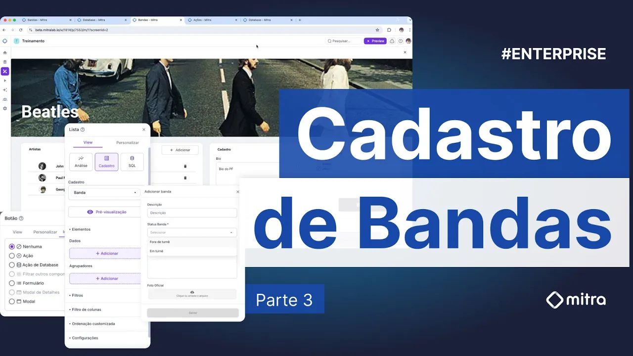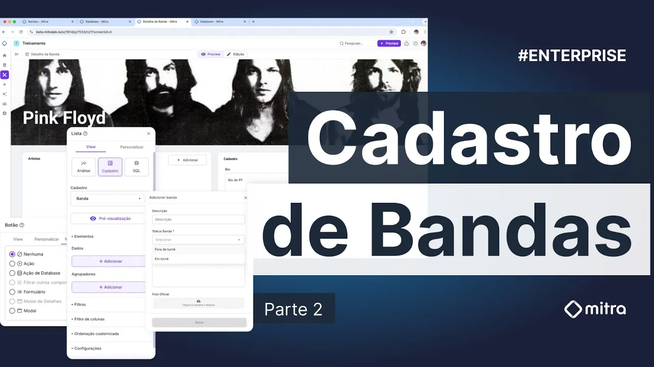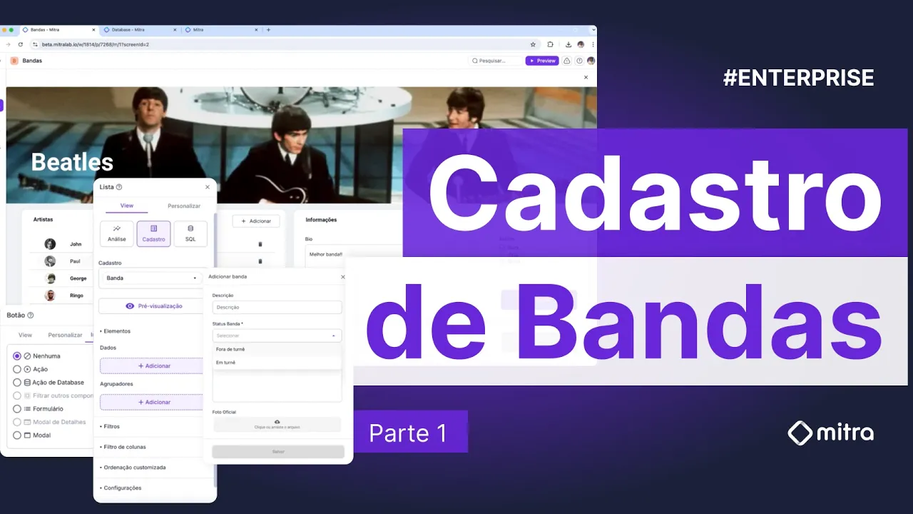 Esta documentação foi desenvolvida com base em três vídeos da série "Cadastro de Bandas", que estão disponíveis a seguir: